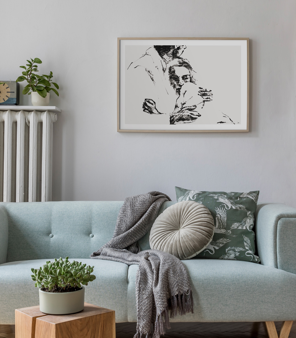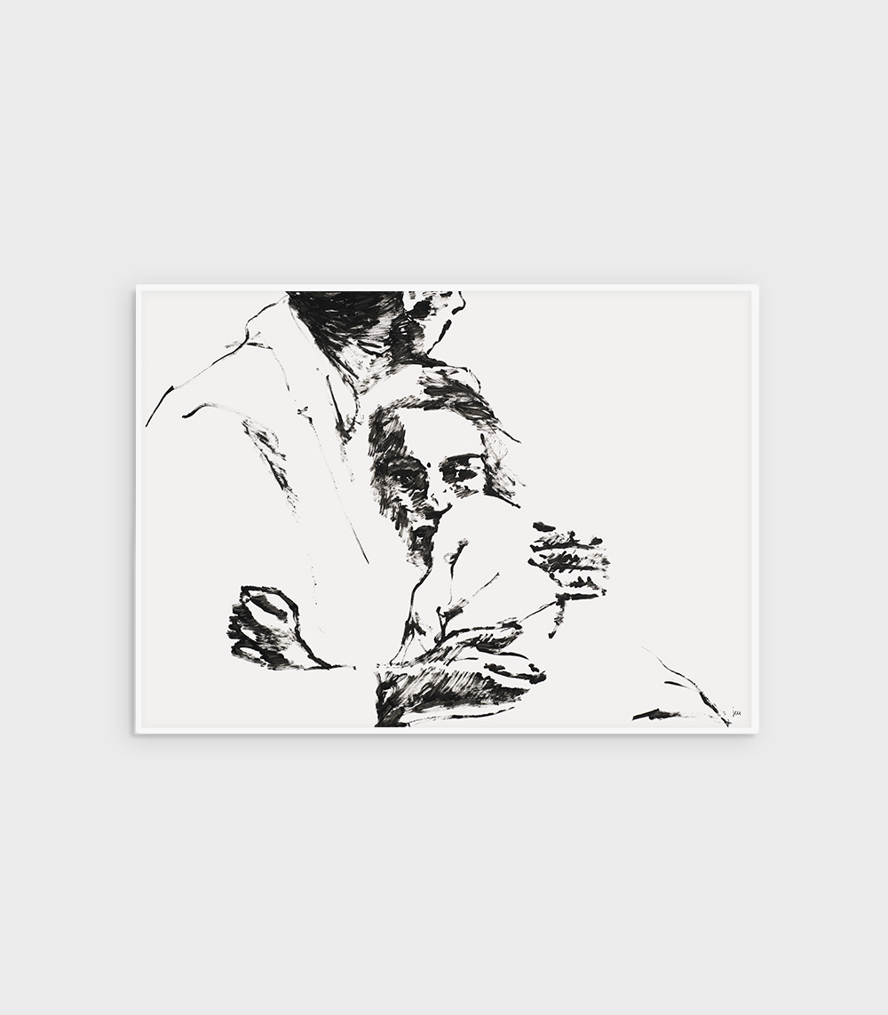 Poster Sastanci/Rastanci (the Croatian word for goodbyes/meetings) is a reproduction of our painting created using ink on paper. The inspiration for this piece is found in an embrace where, isolated from time, it’s hard to determine whether it belongs to lovers who have just reunited after a long time or to those who might never meet again. The poster sizes fit standard frames. The paper is 200 g semi-gloss with matte lamination and UV protection. The frame is not included in the price. The print color may vary slightly from the color on the screen. You can order all formats of this poster either without a mat or with a mat (a white, elegant border between the visual and the edge of the poster) in the following dimensions: 70×100 cm – 4 cm, 50×70 cm – 3 cm, 40×50 cm – 2.5 cm, 30×40 cm – 2 cm.