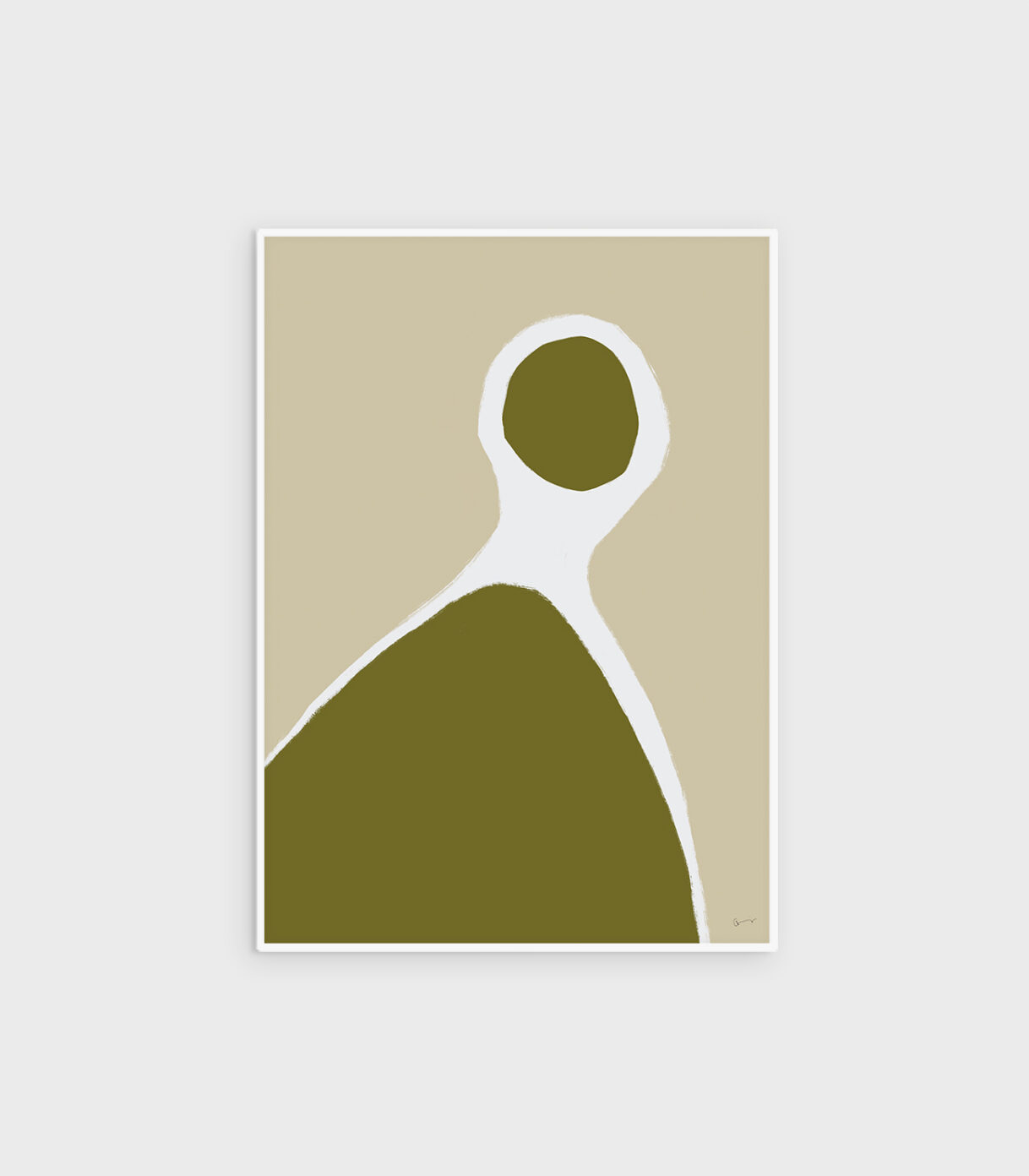 Minimalistička apstraktna figura prikazana u tonovima maslinastozelene i bež boje. Hdizajn poster stiže pakiran u tubu, ima hdizajn suhi žig i potpis autora. Veličine postera odgovaraju standardnim okvirima. Papir je 200 g polusjajni. Okvir nije uključen u cijenu. Boja isprinta može se razlikovati od boje na ekranu.