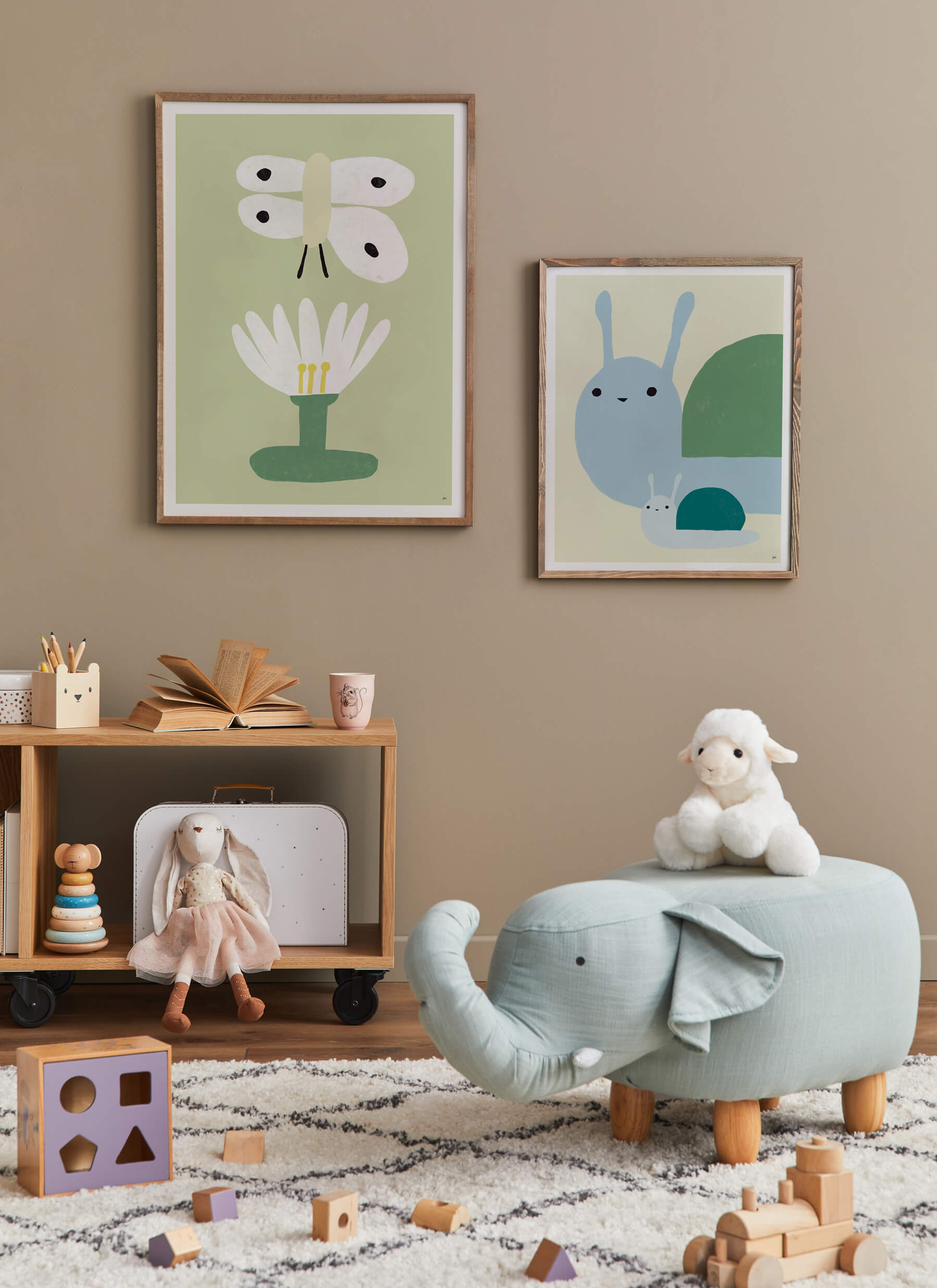 Toj postojećoj kolekciji nedavno smo dodali i nove postere. Tri predivna motiva s livade – leptir s cvijetom, dva puža i pčela iznad cvijeća – zajedno stvaraju harmoničnu cjelinu koja će osvježiti prostor dječje sobe. Nježne nijanse koje dominiraju ovim umjetničkim djelima stvaraju miran, ali istovremeno živopisan ambijent.